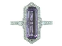Elongated Elegance North South Set Amethyst Ring. Dazzling 14K white gold halo ring with a 2.57ct emerald-cut amethyst and 0.44Tw of diamonds.