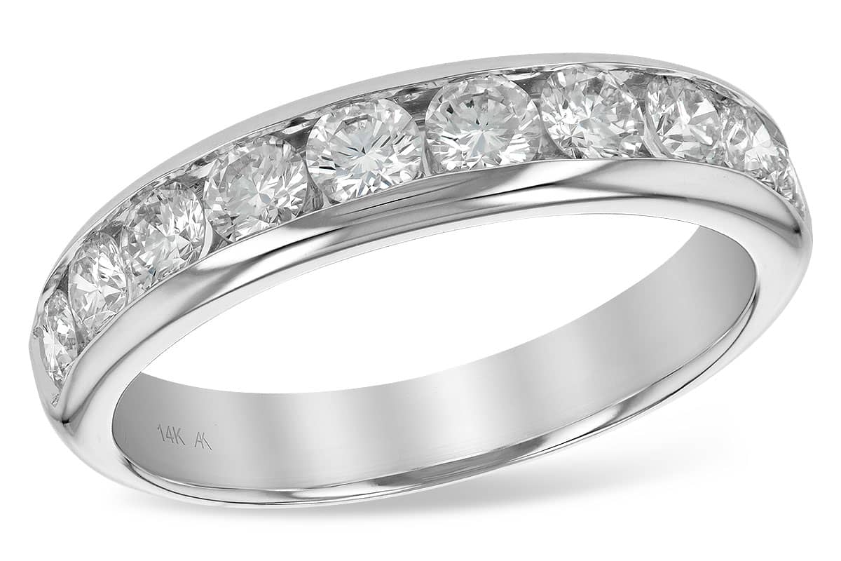 Celebrate your love story with this classic 14K white gold anniversary ring. The channel-set band features a full carat of brilliant round diamonds.
