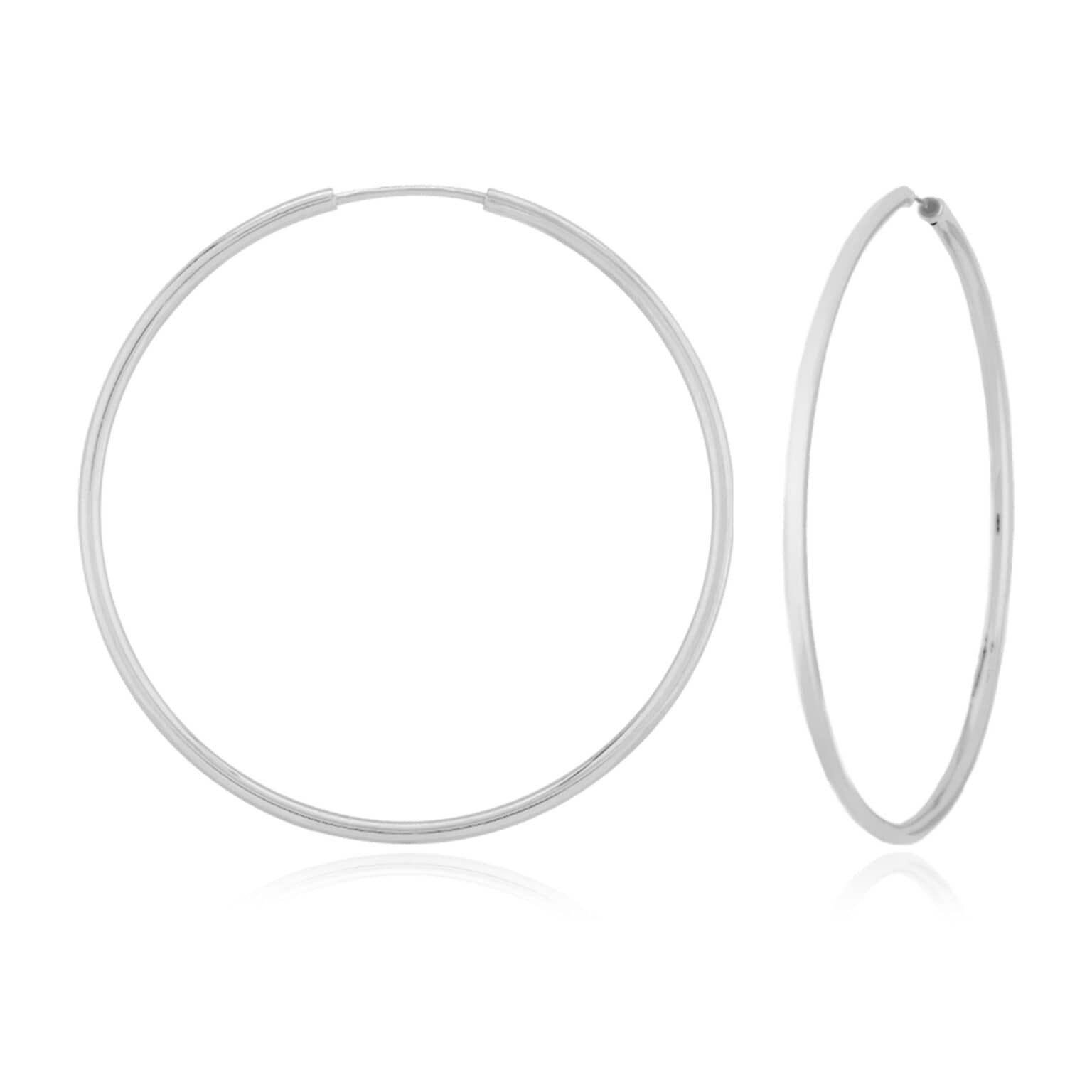 These 14k white gold endless hoop earrings are a timeless classic, designed for a clean, seamless look that never goes out of style. Their lightweight feel makes them comfortable for all-day wear, while the cool glow of the white gold adds a subtle touch of elegance to any outfit, from casual to formal.