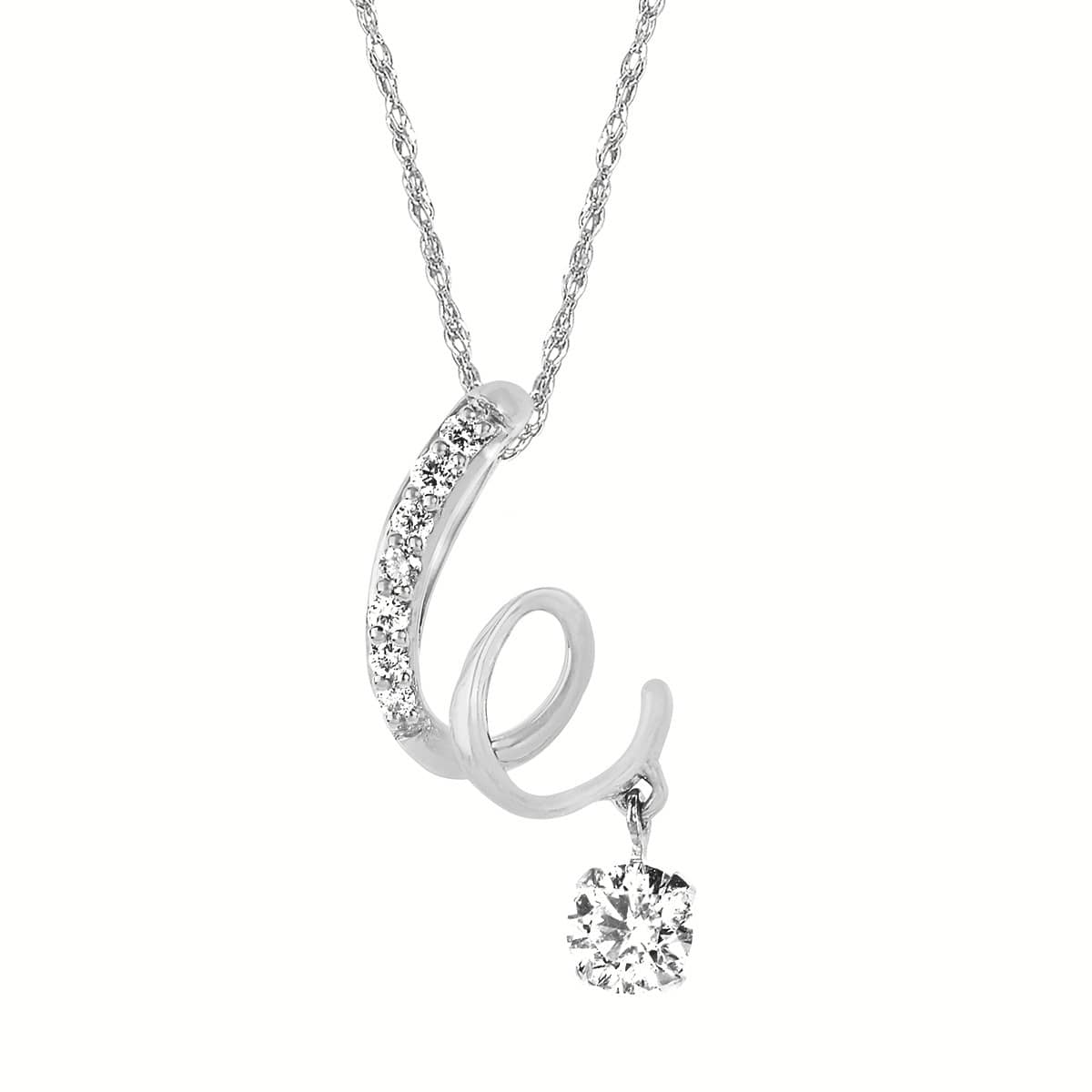 Define your neckline with a piece that blends contemporary art with timeless luxury. This eye-catching pendant features a fluid, 14k white gold “squiggle” design—a playful yet sophisticated silhouette that captures the essence of effortless movement. Suspended from a delicate 18-inch light rope chain, the pendant is hand-set with 8 brilliant round diamonds totaling 0.25 carats. The high-polish gold finish provides a warm, sunny glow that perfectly complements the icy fire of the diamonds.